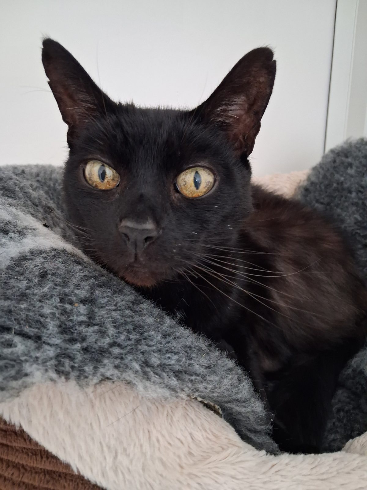 Inkie is a male aged around 1 year old. He is semi-feral, trapped from a colony. He is still getting used to people and is very nervous, so not yet up for rehoming.